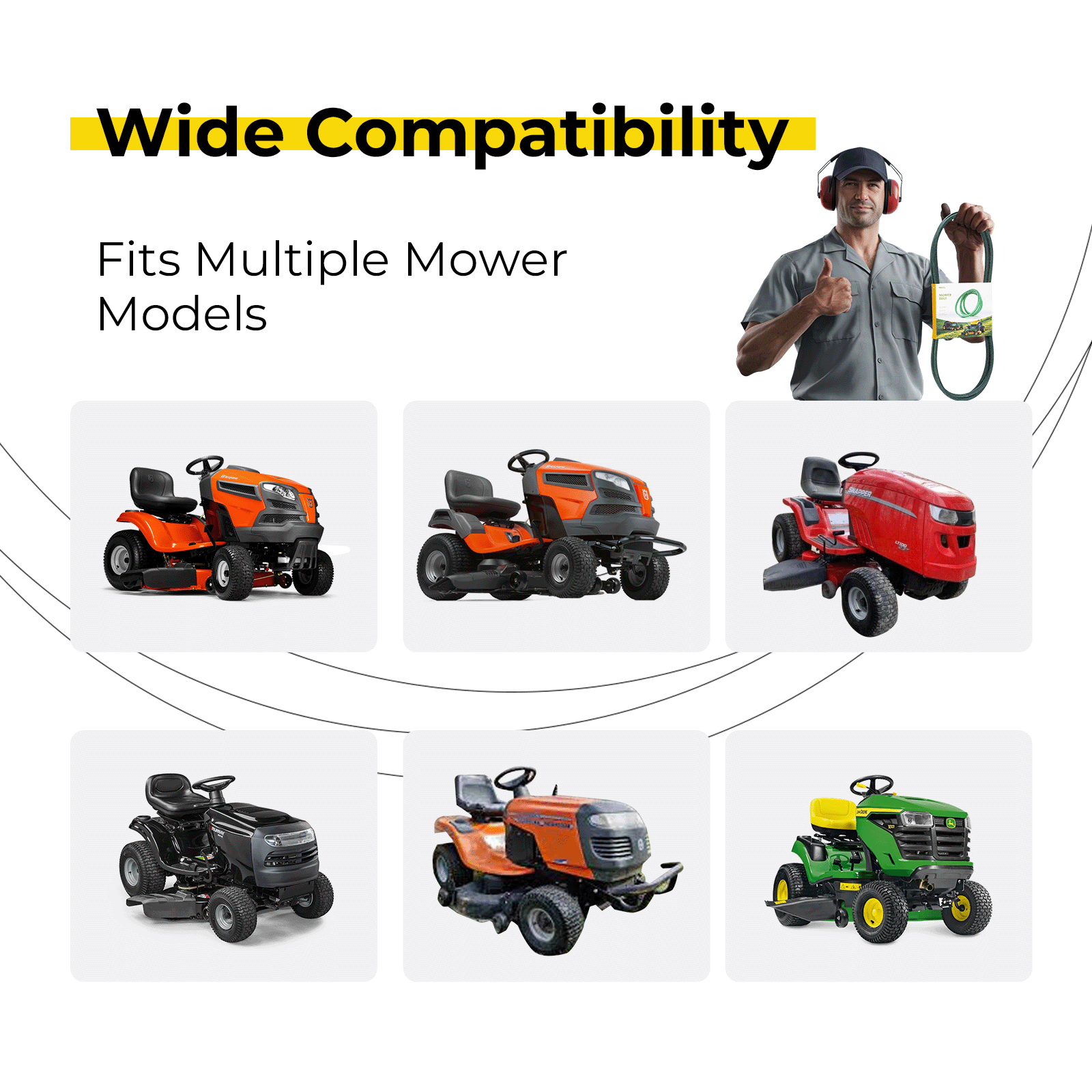 - 【BUILT FOR EXTREME MOWING CONDITIONS】Riodrive belts combine Kevlar cords for strength, Neoprene rubber for environmental protection, and multi-layer dry wrap for consistent grip. They are engineered to perform through high heat, shock loads, tough terrain, and sudden stops while maintaining reliability season after season.