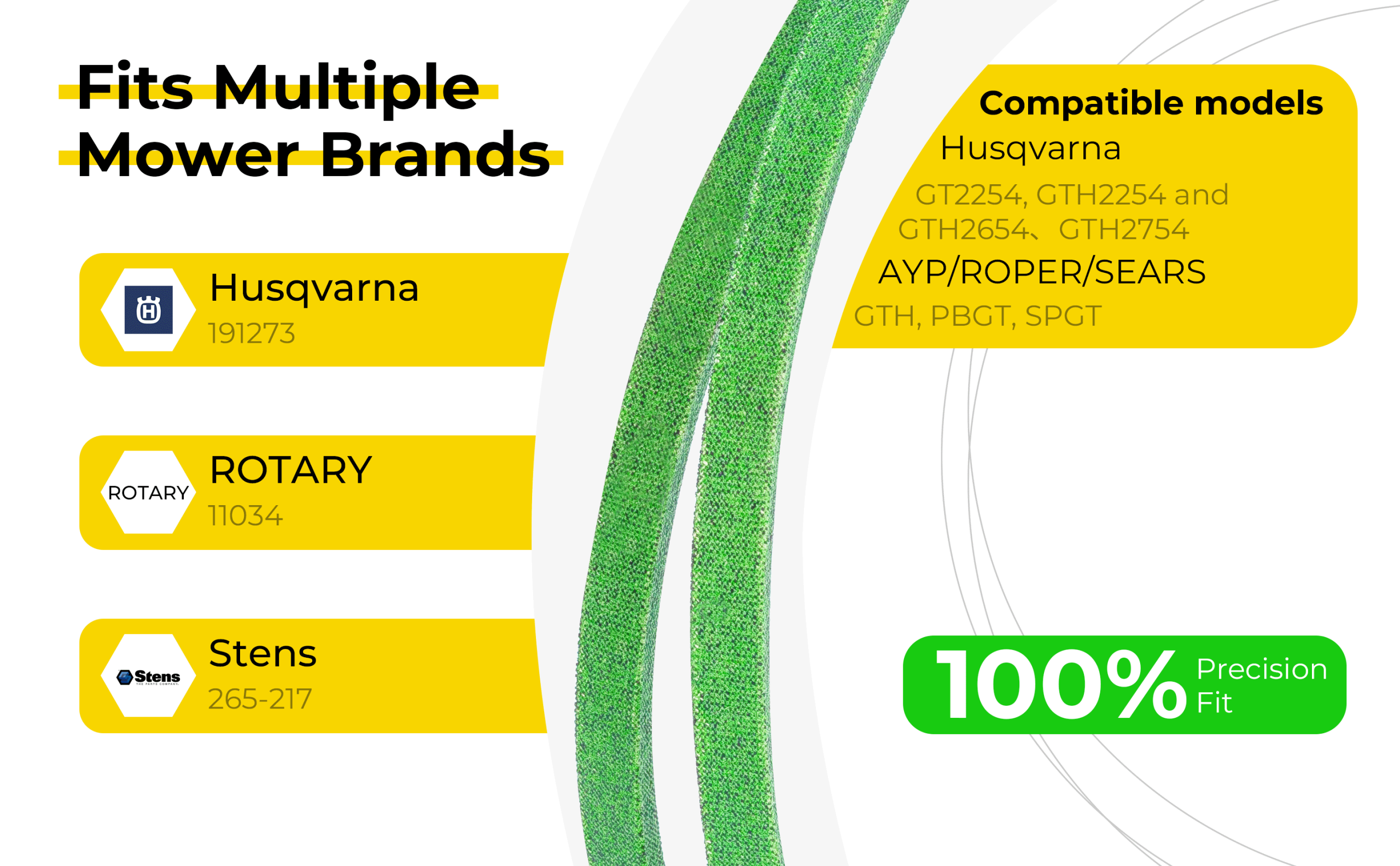 - 【BUILT FOR EXTREME MOWING CONDITIONS】Riodrive belts combine Kevlar cords for strength, Neoprene rubber for environmental protection, and multi-layer dry wrap for consistent grip. They are engineered to perform through high heat, shock loads, tough terrain, and sudden stops while maintaining reliability season after season.