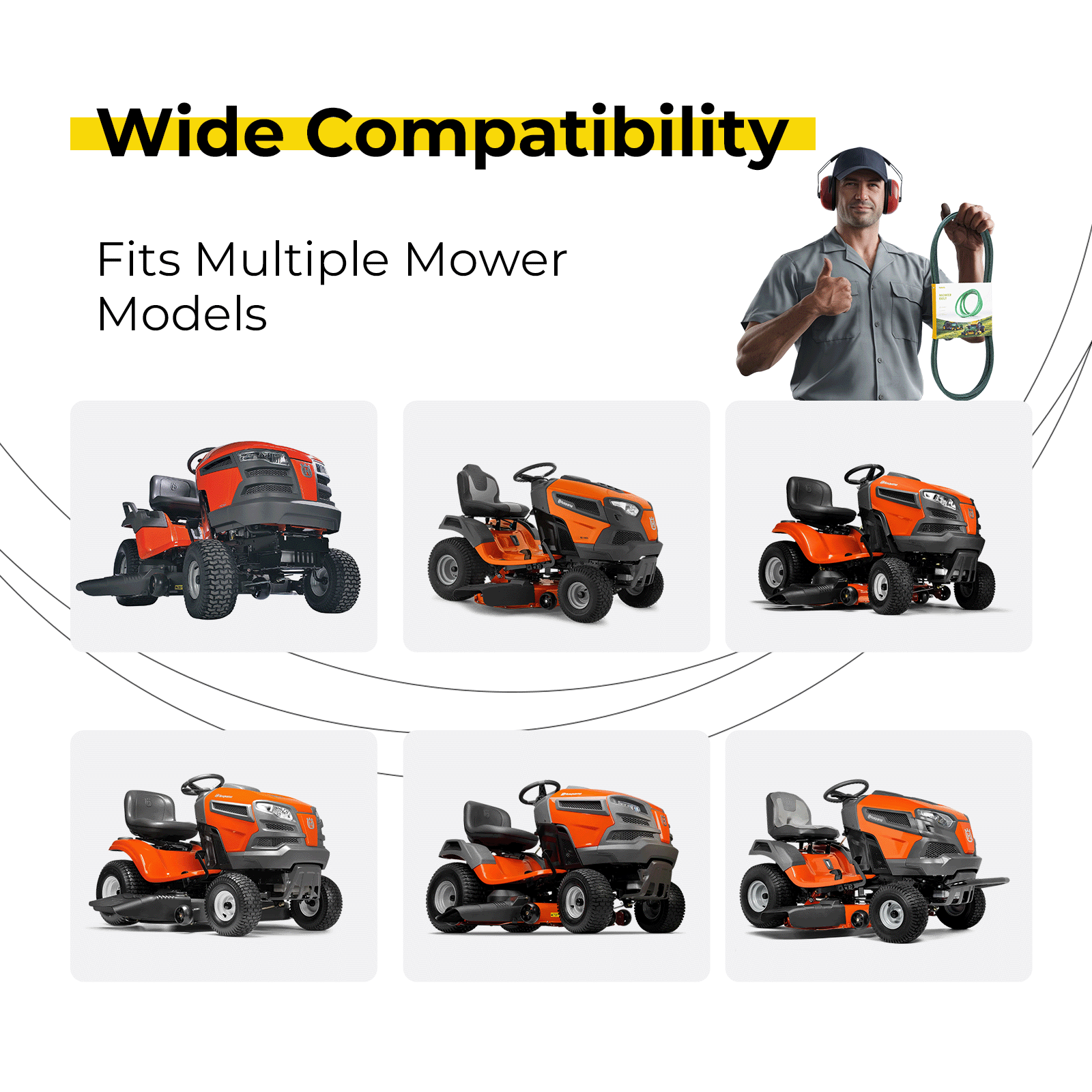 - 【BUILT FOR EXTREME MOWING CONDITIONS】Riodrive belts combine Kevlar cords for strength, Neoprene rubber for environmental protection, and multi-layer dry wrap for consistent grip. They are engineered to perform through high heat, shock loads, tough terrain, and sudden stops while maintaining reliability season after season.