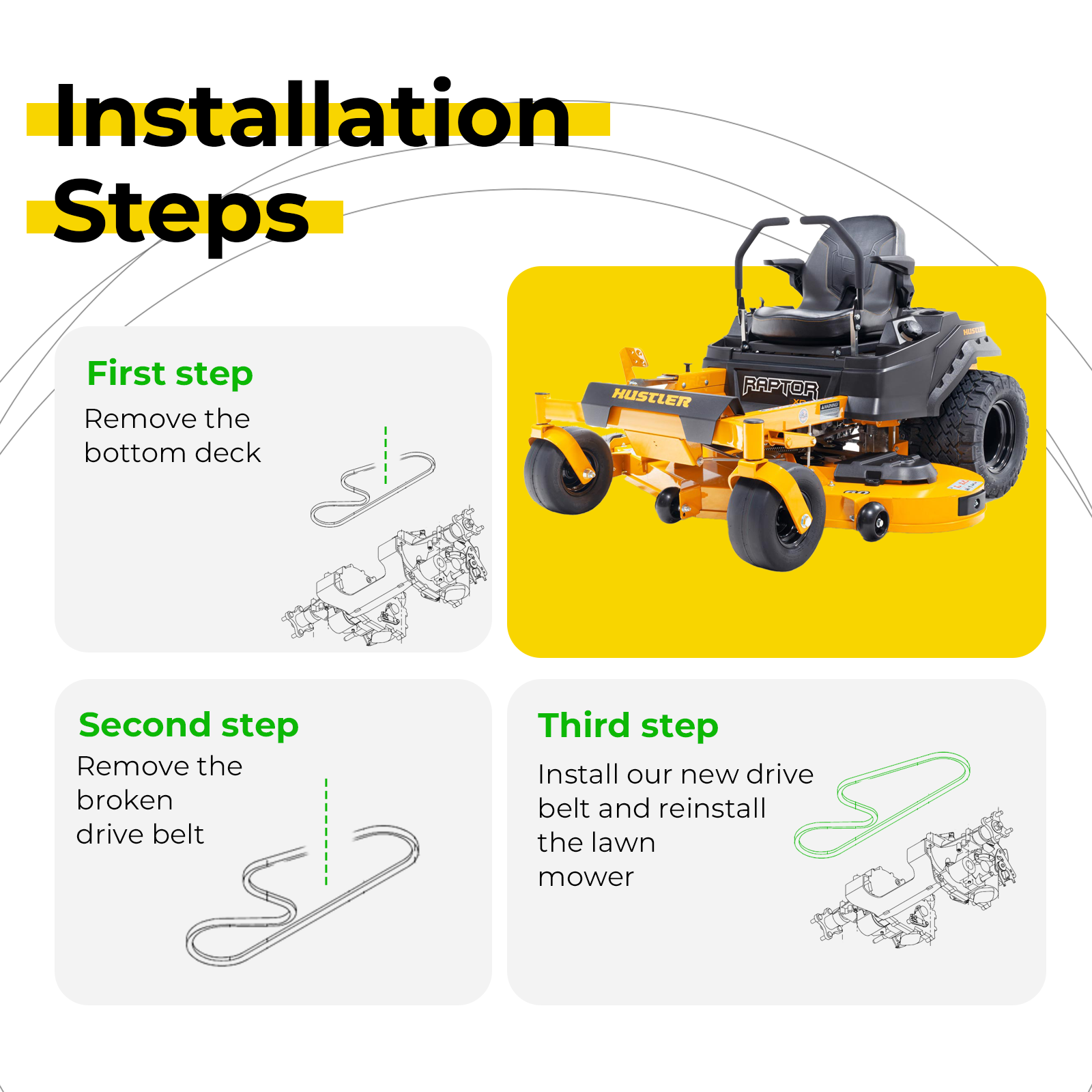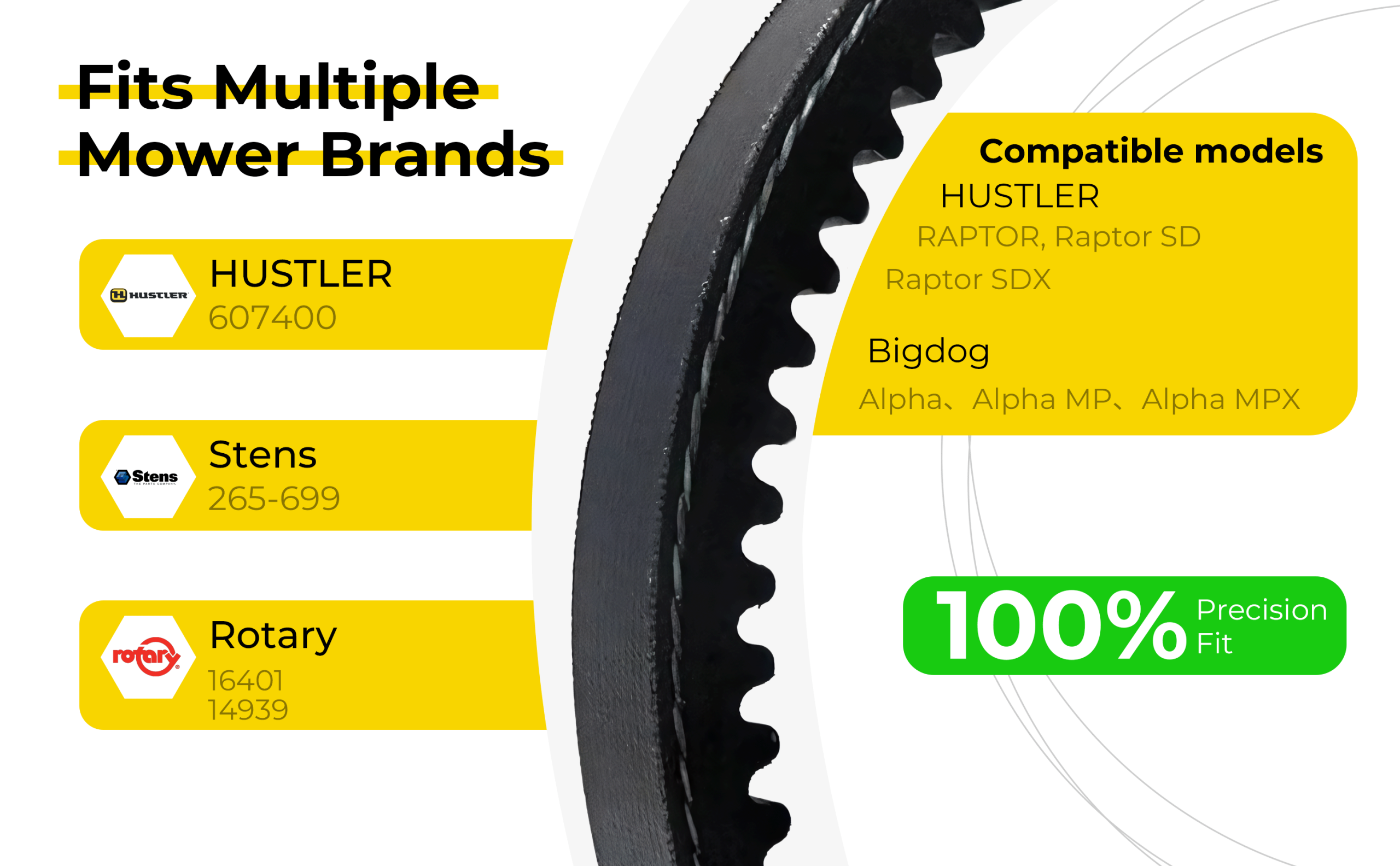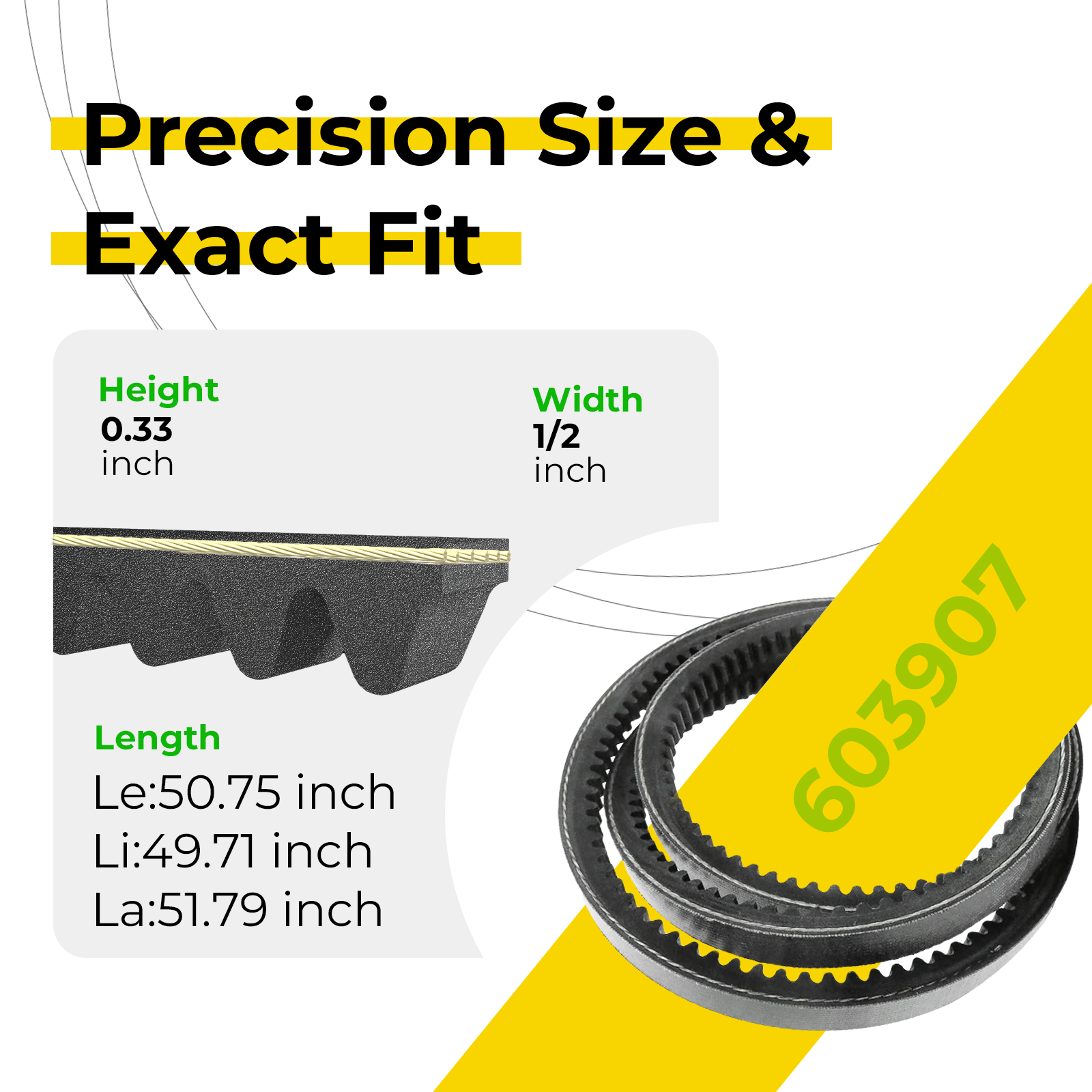 • 【OEM MATCHED COMPATIBILITY】Built to exact OEM specs, this 603907 pump drive belt measures 1/2″ x 50.75″. Replaces Hustler OEM 603907, 607400, 607400-A; also compatible with Rotary 14939, Stens 265-699, and A&I A-603907. Engineered for Hustler zero-turn mowers including Raptor SD (52″, 54″, 60″), Raptor SDX, Raptor Limited, and select Raptor Flip-Up models equipped with dual pump drive systems.