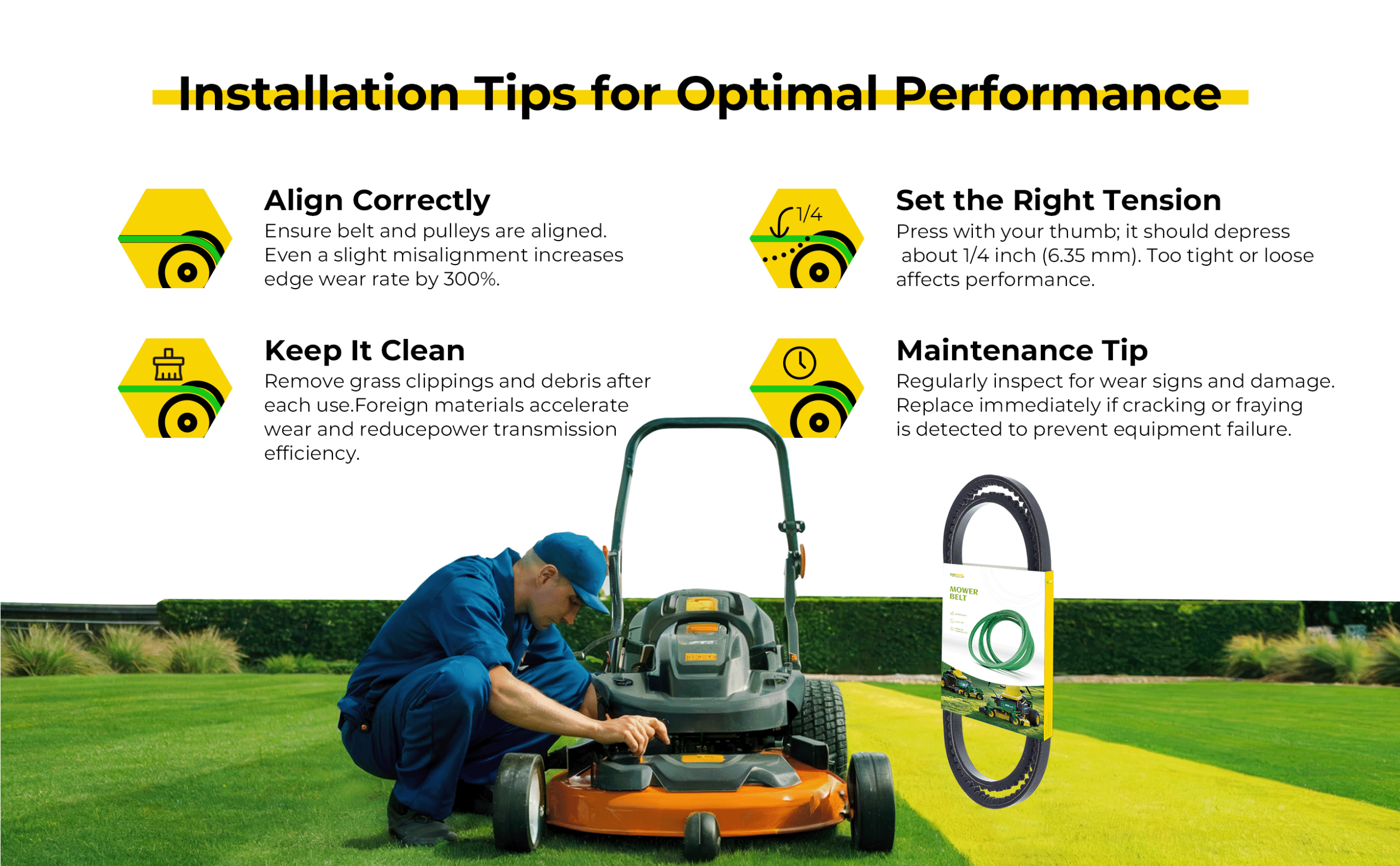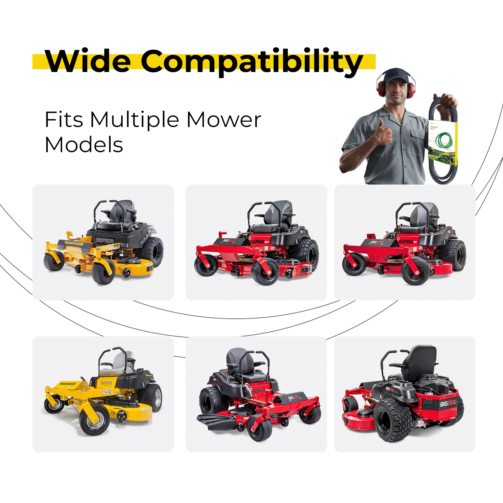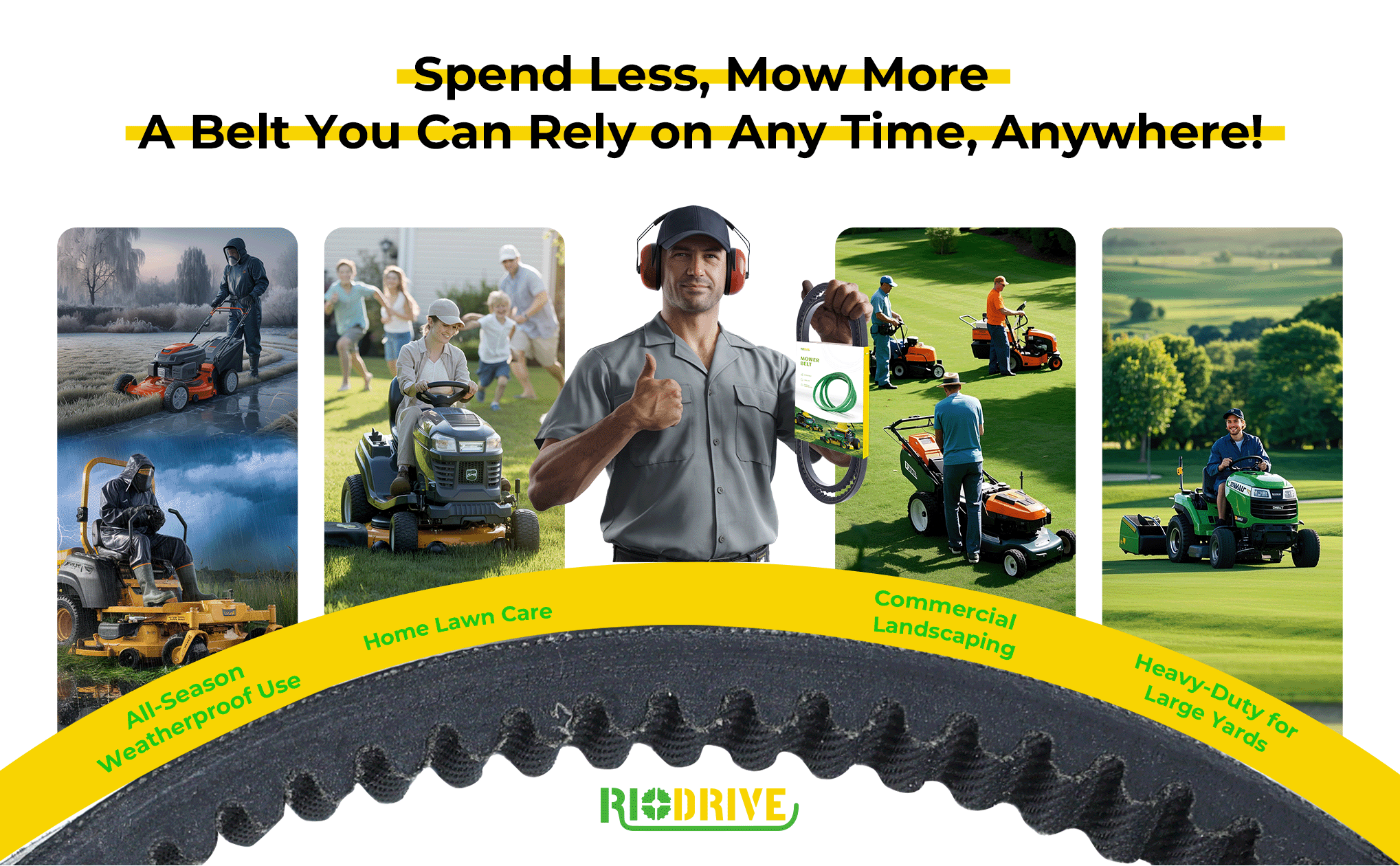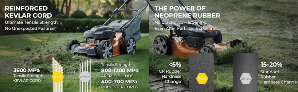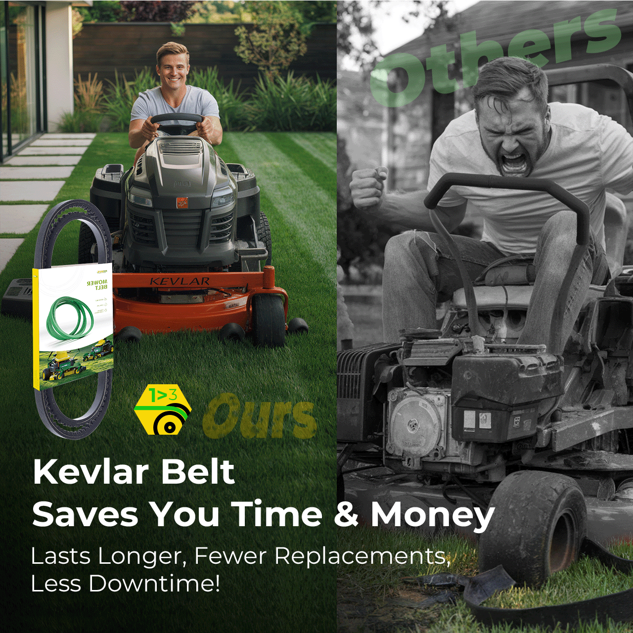 • 【BUILT FOR EXTREME MOWING CONDITIONS】Riodrive belts combine Kevlar cords for strength and Neoprene rubber for environmental protection. They are engineered to perform through high heat, shock loads, tough terrain, and sudden stops while maintaining reliability season after season.