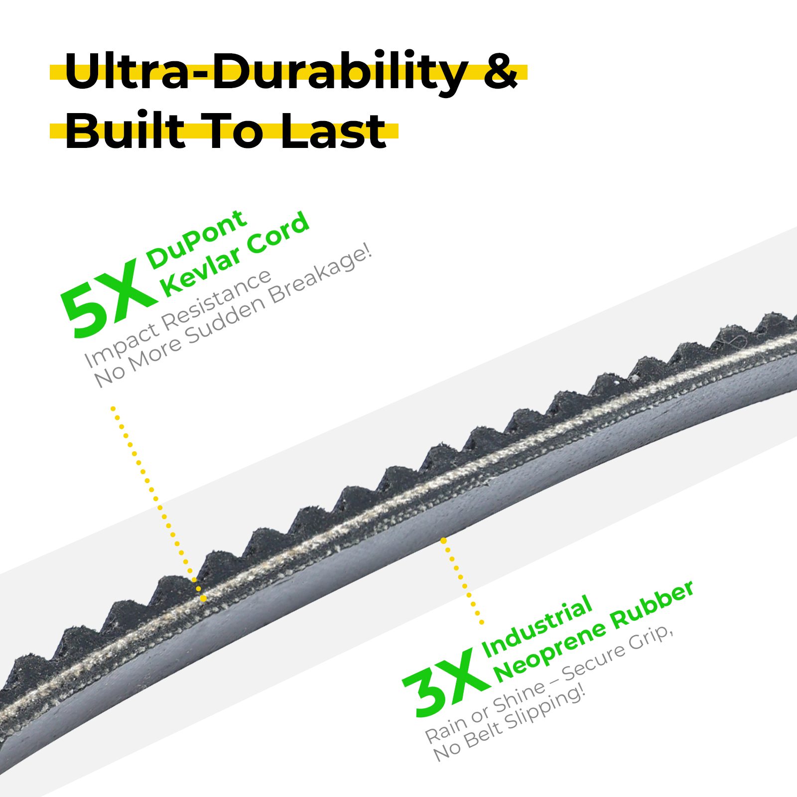 • 【KEVLAR BELT BUILT TO LAST】Reinforced with DuPont Kevlar for higher strength and shock resistance than polyester or standard aramid belts. Maintains tight tension without stretching, even under heavy load. Fewer replacements, less downtime, and dependable performance all season.